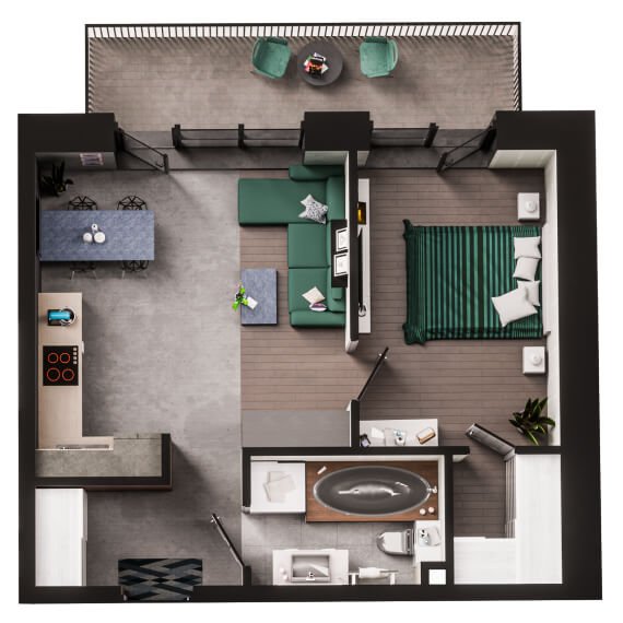 Svetainė su virtuvės zona